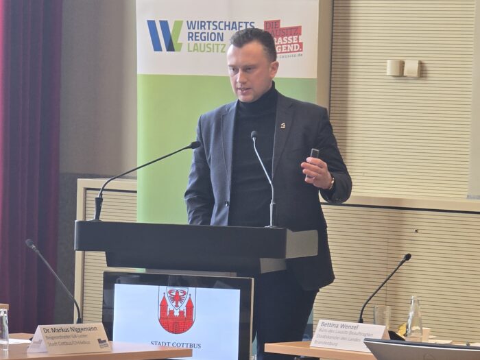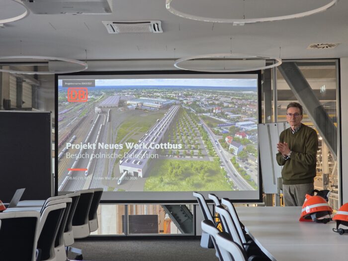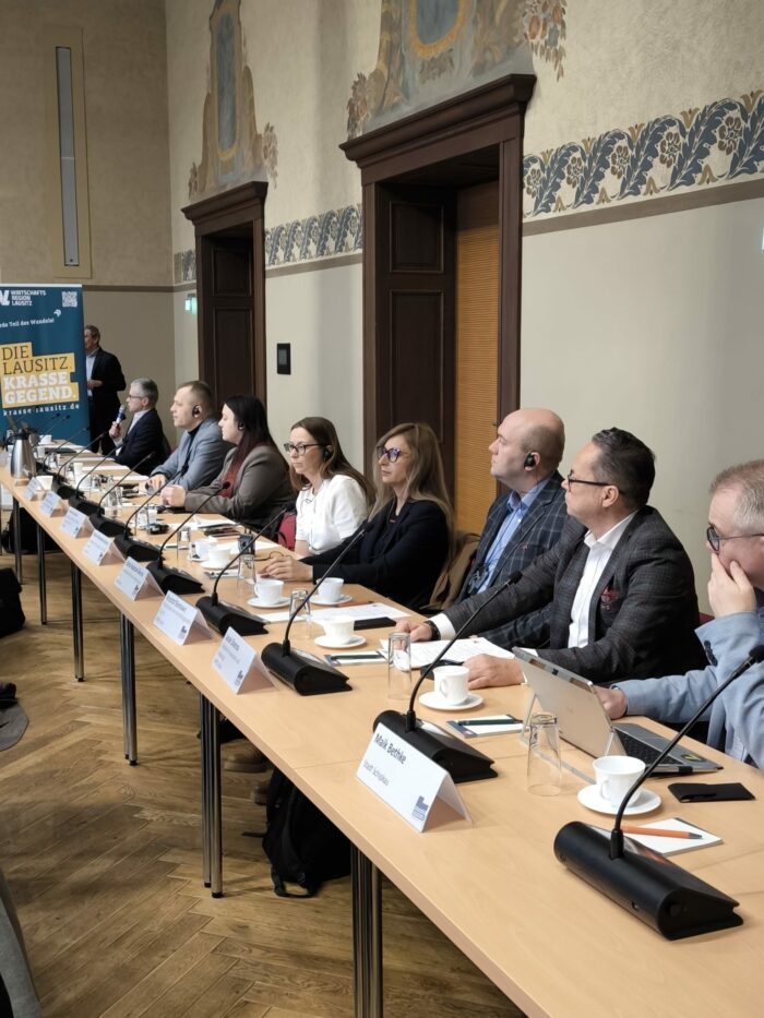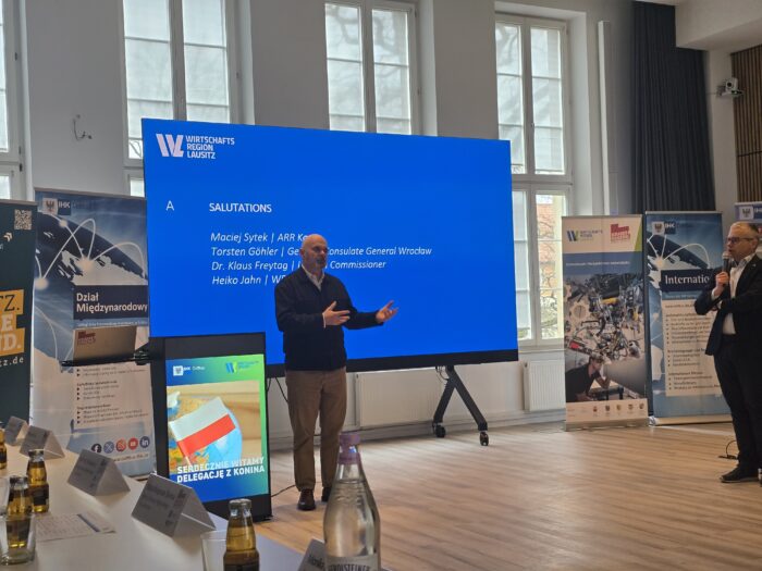 W dniach 10-11 lutego delegacja Wielkopolski Wschodniej miała przyjemność gościć w Cottbus (Niemcy). Celem wizyty była wymiana doświadczeń i dobrych praktyk pomiędzy regionami opartymi na węglu brunatnym, które przechodzą obecnie proces transformacji energetycznej. W skład polskiej delegacji weszli przedstawiciele Agencji Rozwoju Regionalnego S.A. w Koninie z Prezesem Maciejem Sytkiem na czele, miasto Konin reprezentował sekretarz Rafał Duchniewski, natomiast MPEC-Konin dyrektor innowacji i marketingu Jacek Slanina. W ramach wizyty odbyły się spotkania robocze, mogliśmy również obejrzeć projekty naukowe i techniczne dotyczące transformacji energetycznej (m. in. Centrum Utrzymania Pociągów Deutsche Bahn). Wspólnie z Rafałem Duchniewskim mieliśmy okazje przedstawić w miejskim ratuszu w Cottbus prezentacje pokazujące przebieg zmian transformacyjnych w regionie konińskim.