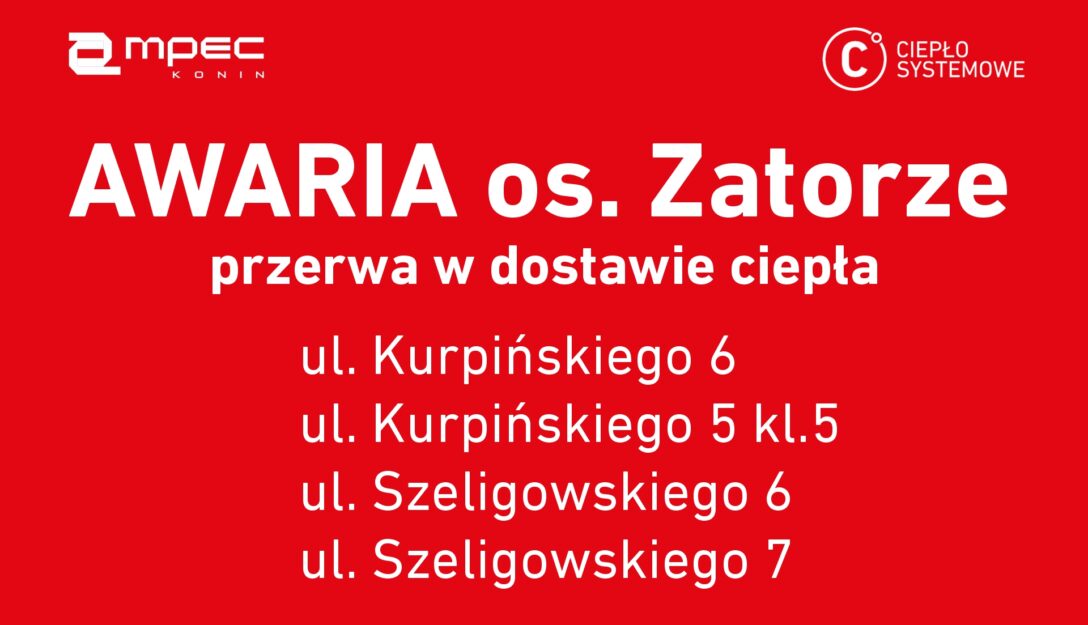 W związku z awarią sieci ciepłowniczej wystąpi przerwa w dostawie energii cieplnej do następujących obiektów: