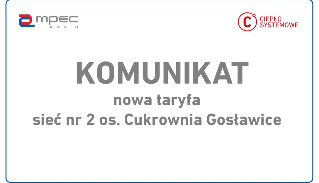 informuję, że od 1 maja 2026 r. MPEC – Konin Sp. z o.o. wprowadza do rozliczeń z odbiorcami nową taryfę dla ciepła. Taryfa została zatwierdzona przez Prezesa Urzędu Regulacji Energetyki decyzją nr OPO.ZT.4210.17.2025.ASz1 z dnia 31 marca 2026 r. i opublikowana w Biuletynie Branżowym URE – Ciepło Nr 99 (3757). Powyższa zmiana skutkować będzie średnioroczną obniżką łącznych kosztów dostawy ciepła od 01-05-2026 r. dla odbiorców ciepła z sieci nr 2 o 2,04%.