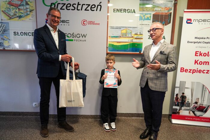 W piątek, 3 października, laureaci konkursów: plastycznego i filmowego (ich miejsca nadal pozostawały tajemnicą) stawili się wraz z opiekunami w siedzibie MPEC-u, by poznać wyniki i zajęte miejsca. Po ogłoszeniu wyników laureaci odebrali nagrody w formie „plecaków pełnych szczęścia”, które wręczyli wspólnie z-ca prezydenta miasta Konina Witold Nowak oraz prezes MPEC-Konin Sławomir Lorek. Do tego sesja fotograficzna i wystawa nagrodzonych prac. A wszystko w ramach projektu „Wielkopolskie ciepło przyjazne środowisku – organizacja konkursów, gier i quizów w zakresie edukacji ekologicznej” dofinansowanego ze środków Wojewódzki Fundusz Ochrony Środowiska i Gospodarki Wodnej w Poznaniu. Pełna lista nagrodzonych poniżej: