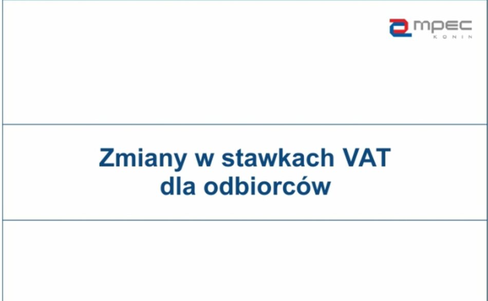 Miejskie Przedsiębiorstwo Energetyki Cieplnej – Konin Sp. z o.o. informuje, że zgodnie z obowiązującymi aktami prawnymi stawka podatku VAT na[...]