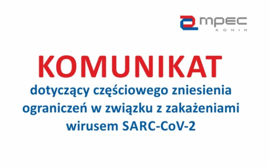 Komunikat dotyczący częściowego zniesienia ograniczeń obowiązujących pracowników i klientów MPEC-Konin Sp. z o.o. w związku z ogłoszonym na obszarze Rzeczypospolitej[...]