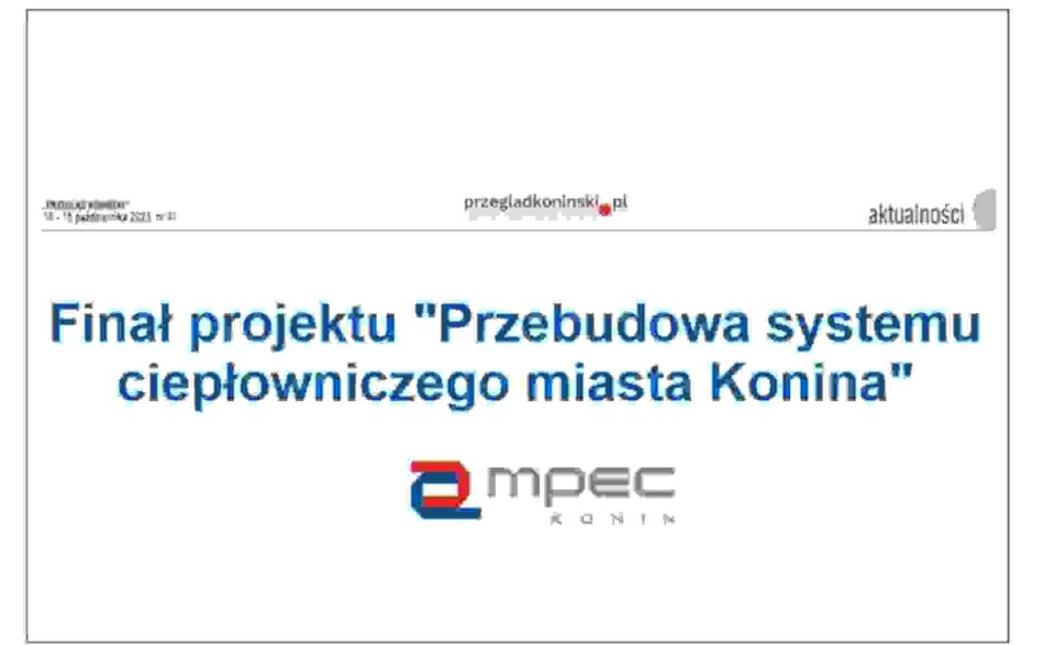 Dobiegła właśnie końca realizacja projektu pn. „Przebudowa systemu ciepłowniczego miasta Konina” prowadzonego przez koniński MPEC.