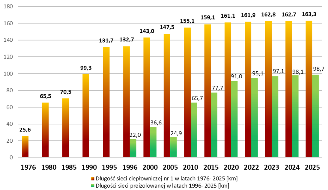 Długość sieci ciepłowniczych eksploatowanych przez Spółkę na dzień 31-12-2025 r: